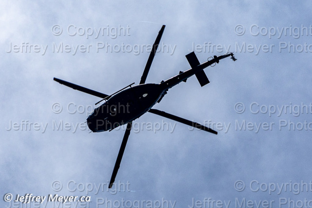 Photographing the underbelly of a helicopter hovering a few minutes directly above you is a pretty rare thing, and one doing so 90 degrees above your home/backyard is perhaps even more unicorn. So, in all my haste to capture this shot, and the air parade flying across my backyard line of sight, I set my shutter speed to 1/4000th of a second and the result is what you see here. I also managed to capture some 4K video of this, and at 1/120th of a second (the speed at which I shot the video) you can see the blades showing a more interesting circular blur motion. Yet, at the 1/4000th shutter speed used here, everything was frozen tack-sharp, and I liked that too. If you look closely, however, you can still see a white streak of air left behind by the propeller spins. I'm sure there's a more elegant word for that phenomena, but I don't yet know it. Altogether, a pretty awesome sight with some great living room acoustics as you run throughout the house to get your camera and figure out what is going on outside. :)